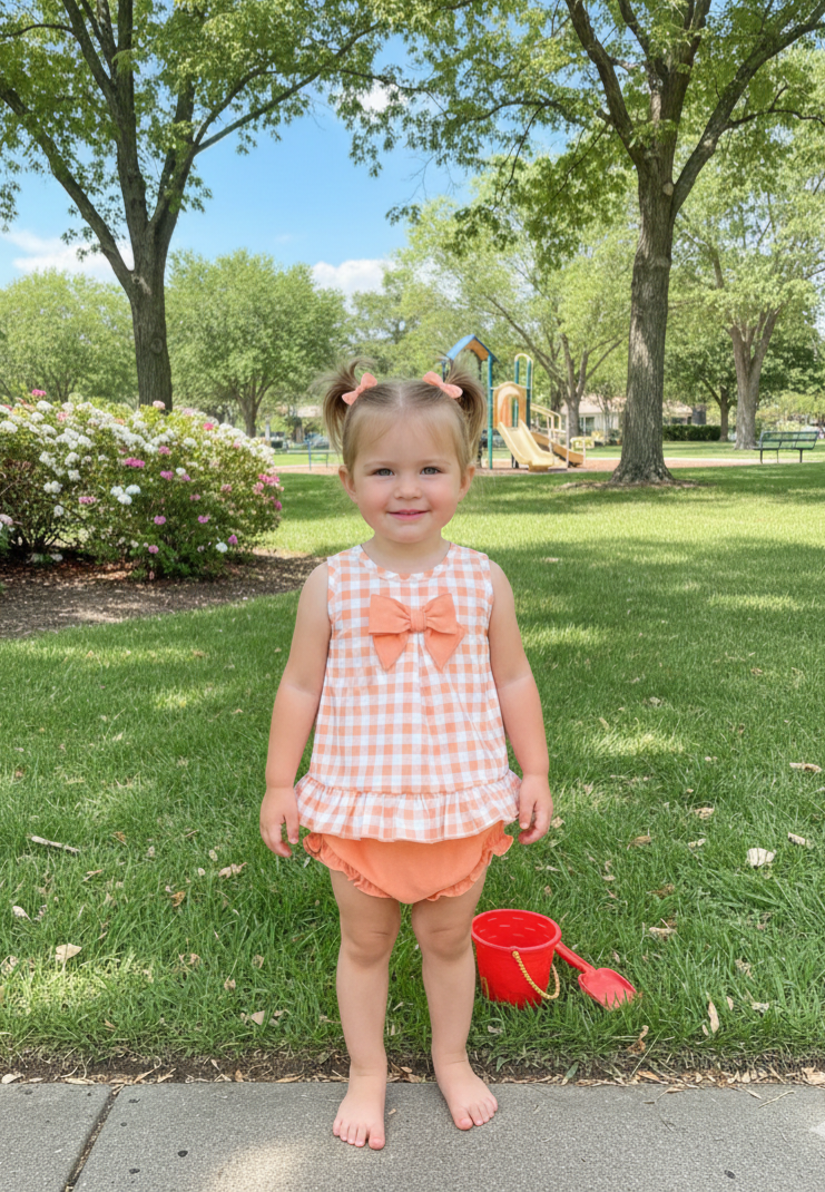 Es un sitio de cuadro bici en color melocotón y blanco, compraguita a juego, en color melocotón.