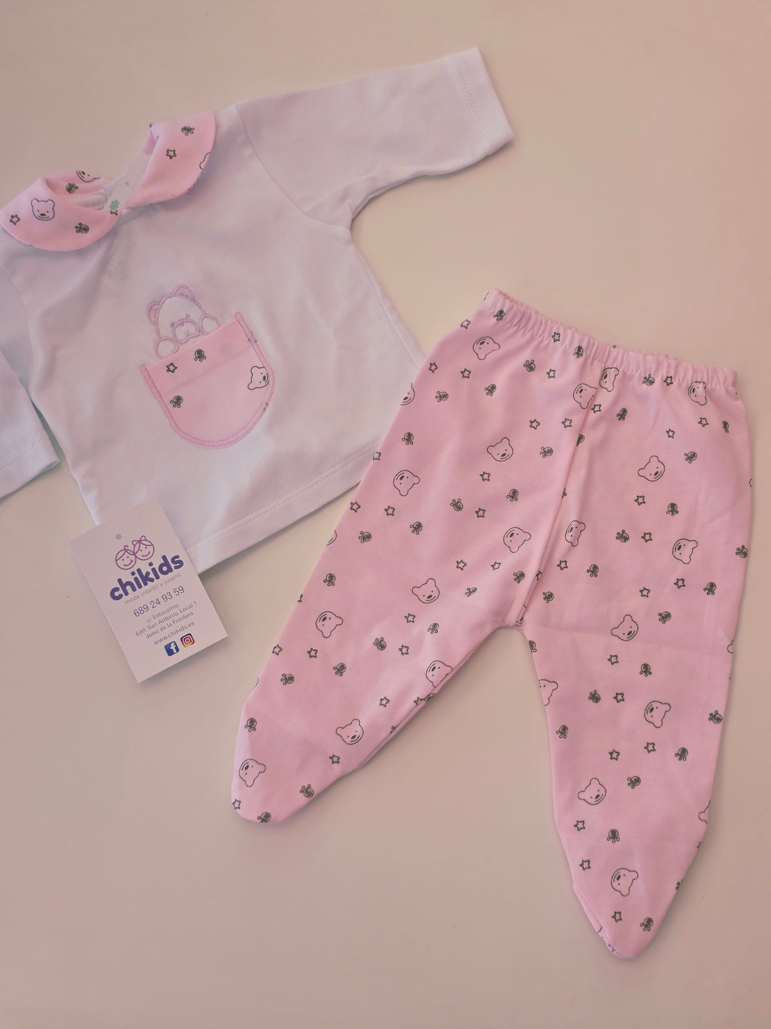 Conjunto 2 piezas "Osito" 0 a 6 mes rosa | Primavera Verano