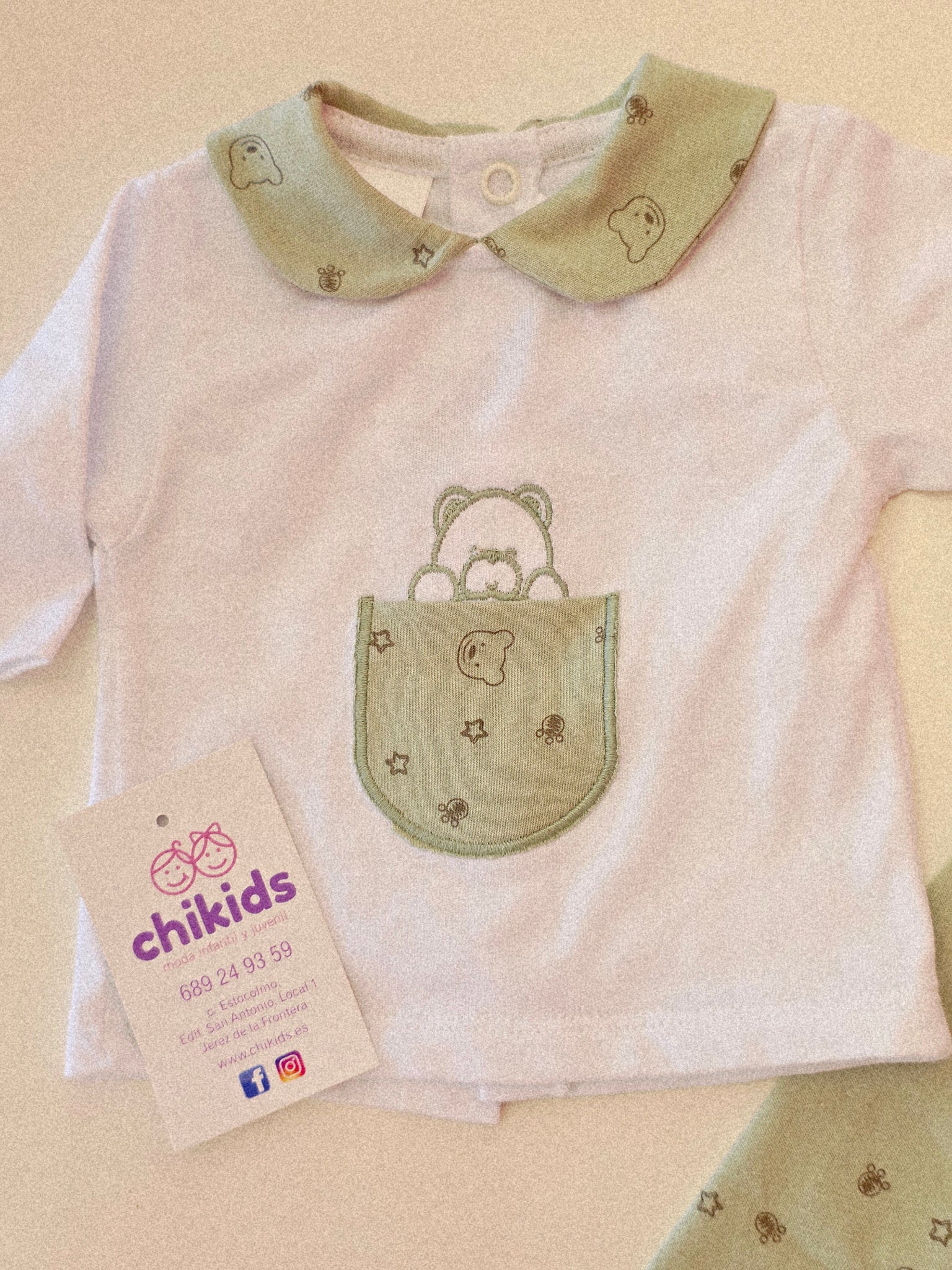 Conjunto 2 piezas "Osito" 0 a 6 mes verde | Primavera Verano