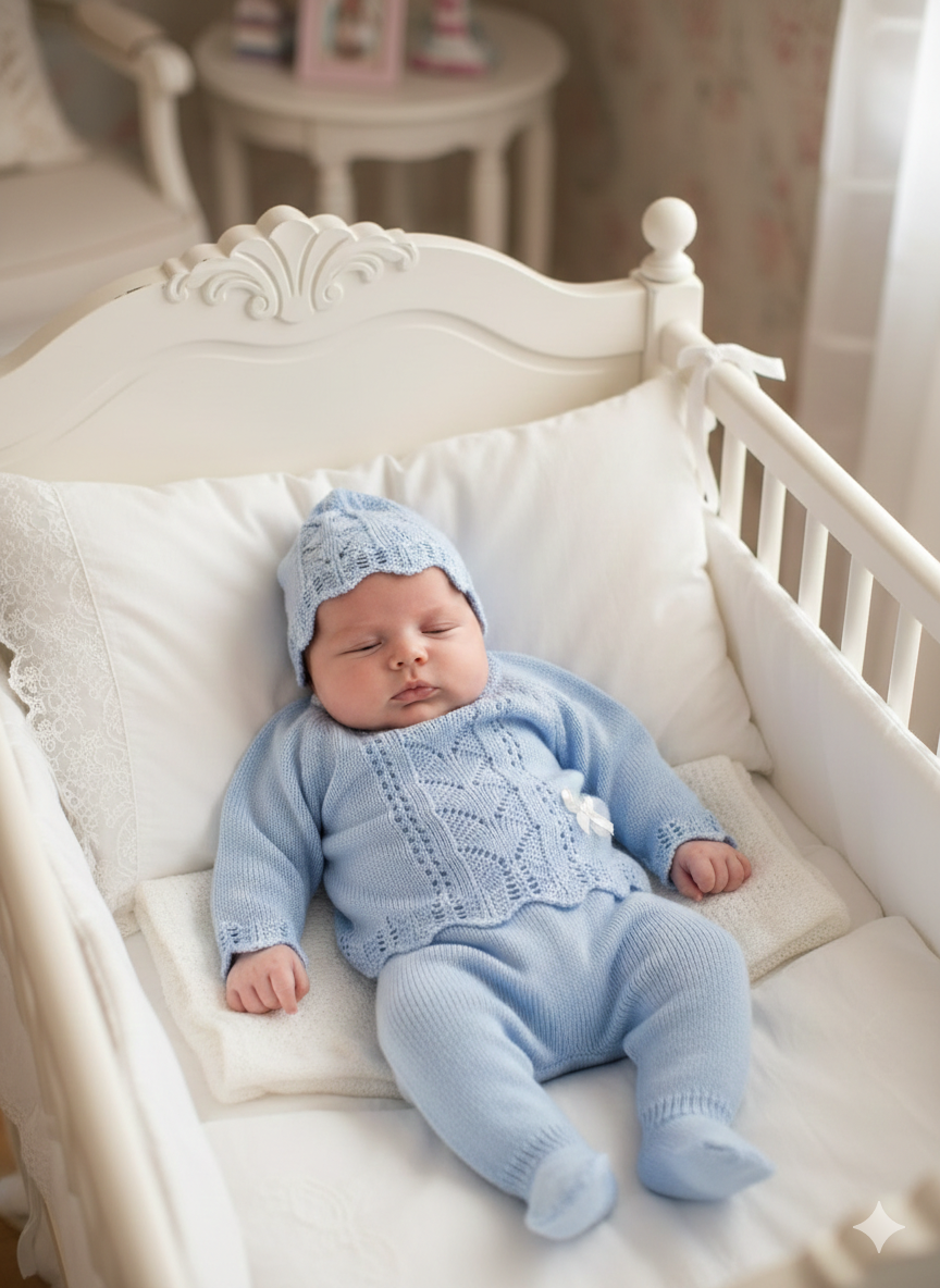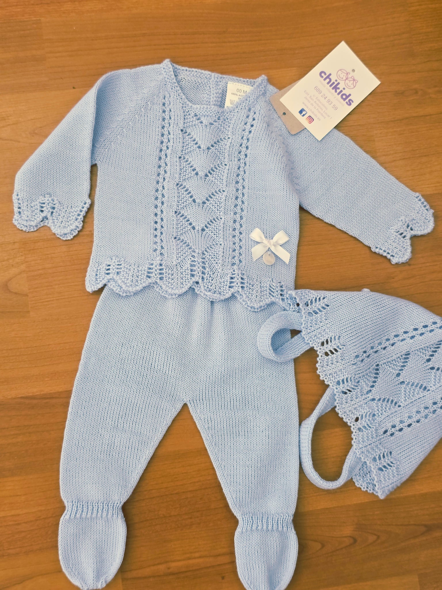 Conjunto hilo 00 a 3 meses Celeste | Primavera Verano