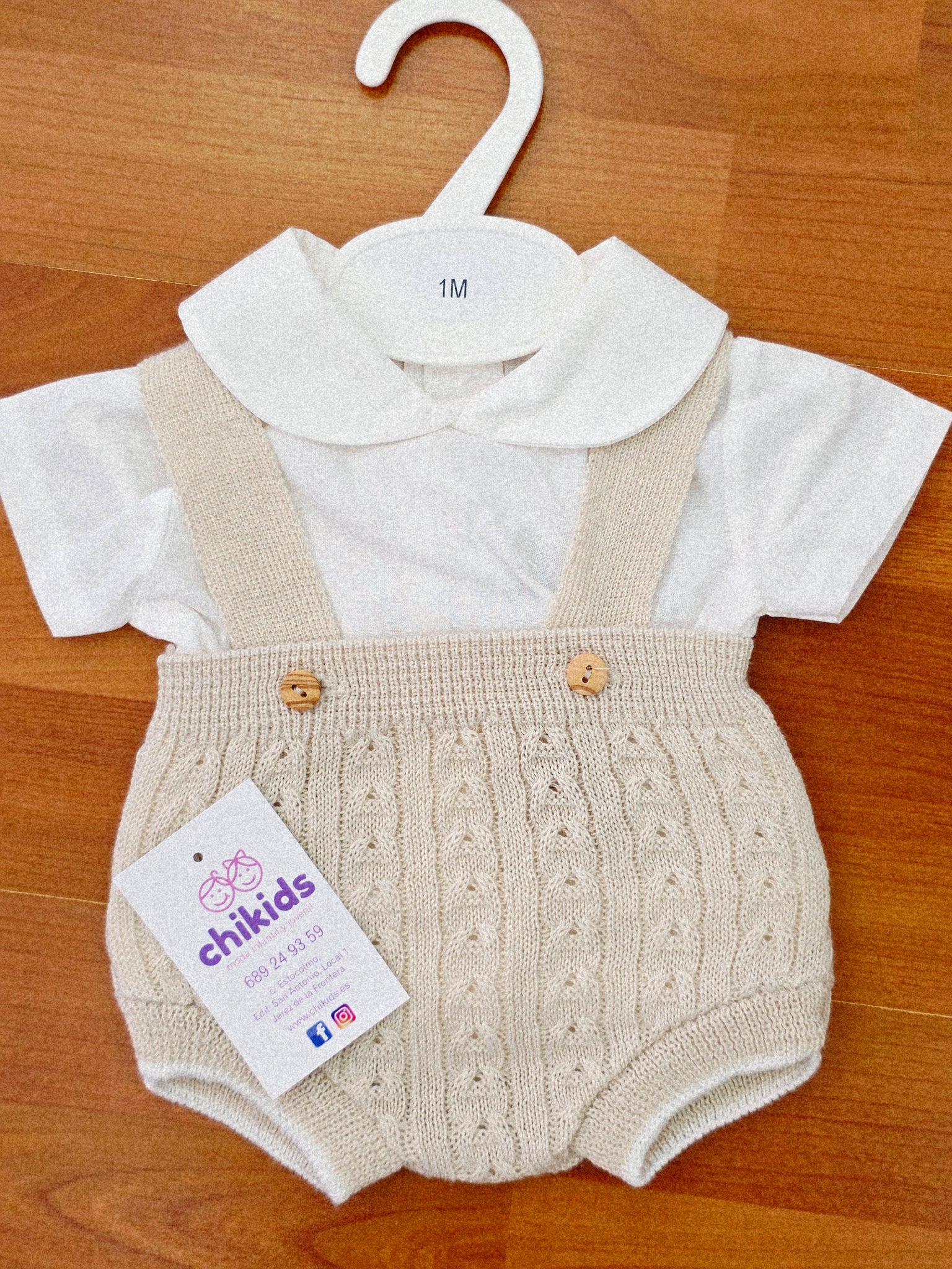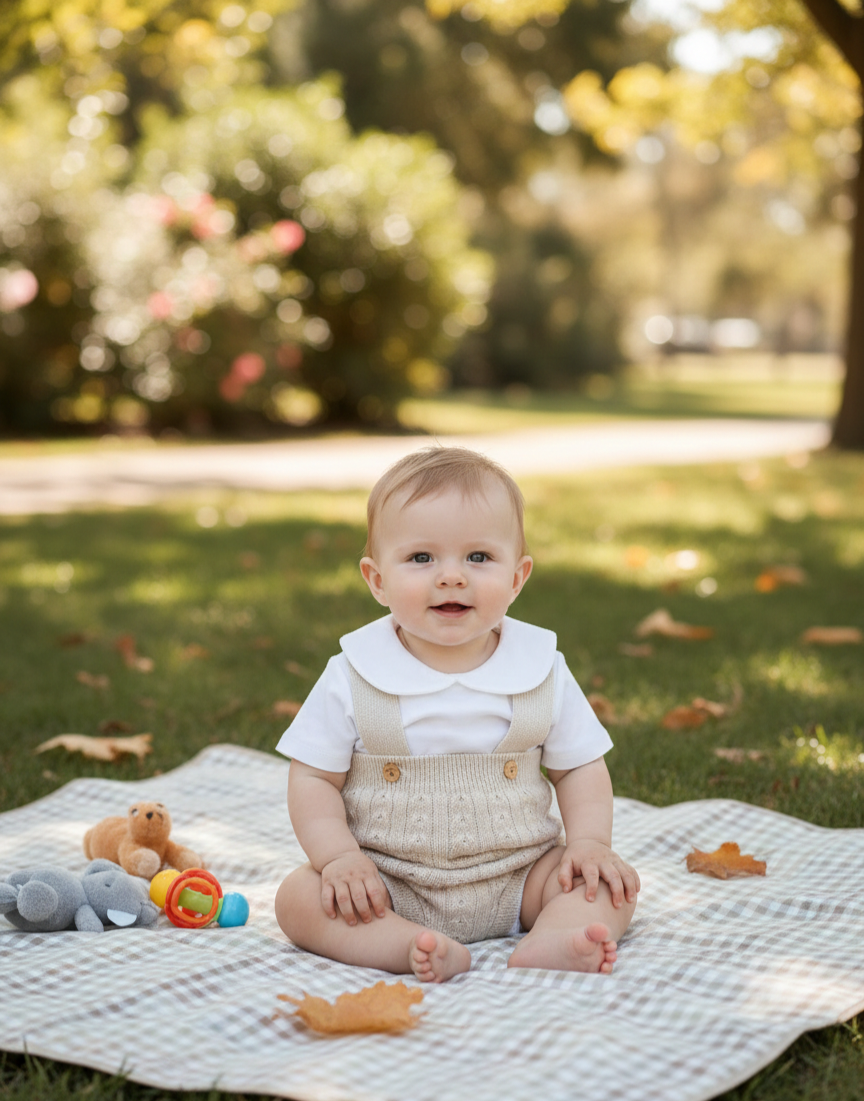 Conjunto hilo peto 1 a 6 meses beig/ topo | primavera verano