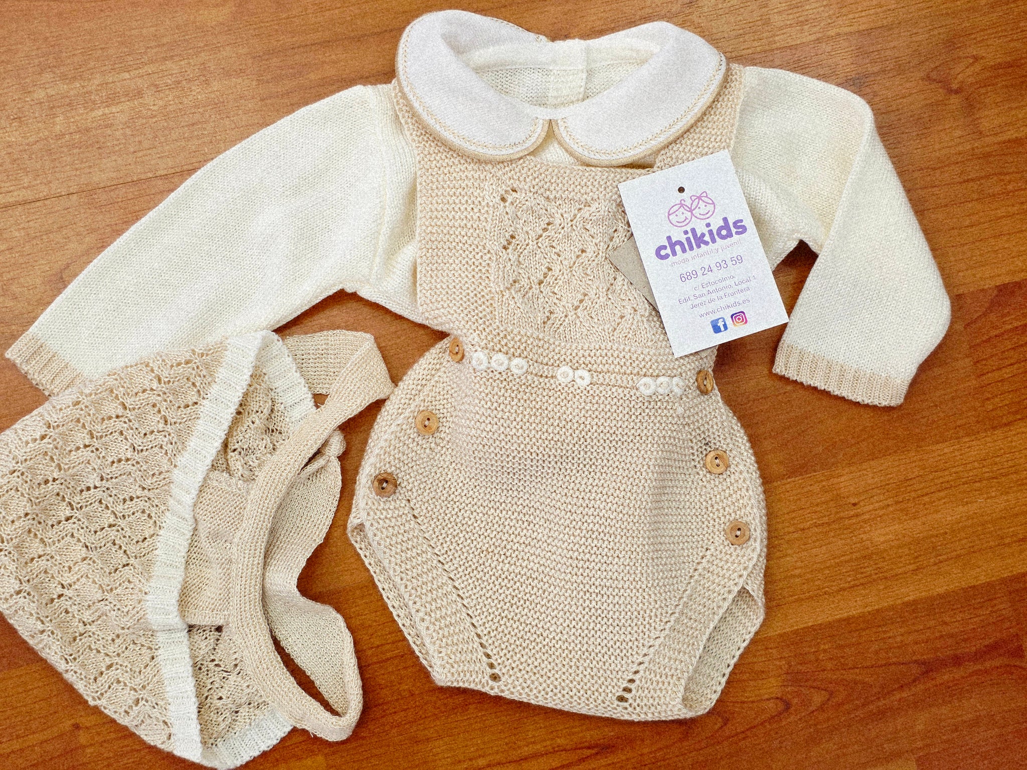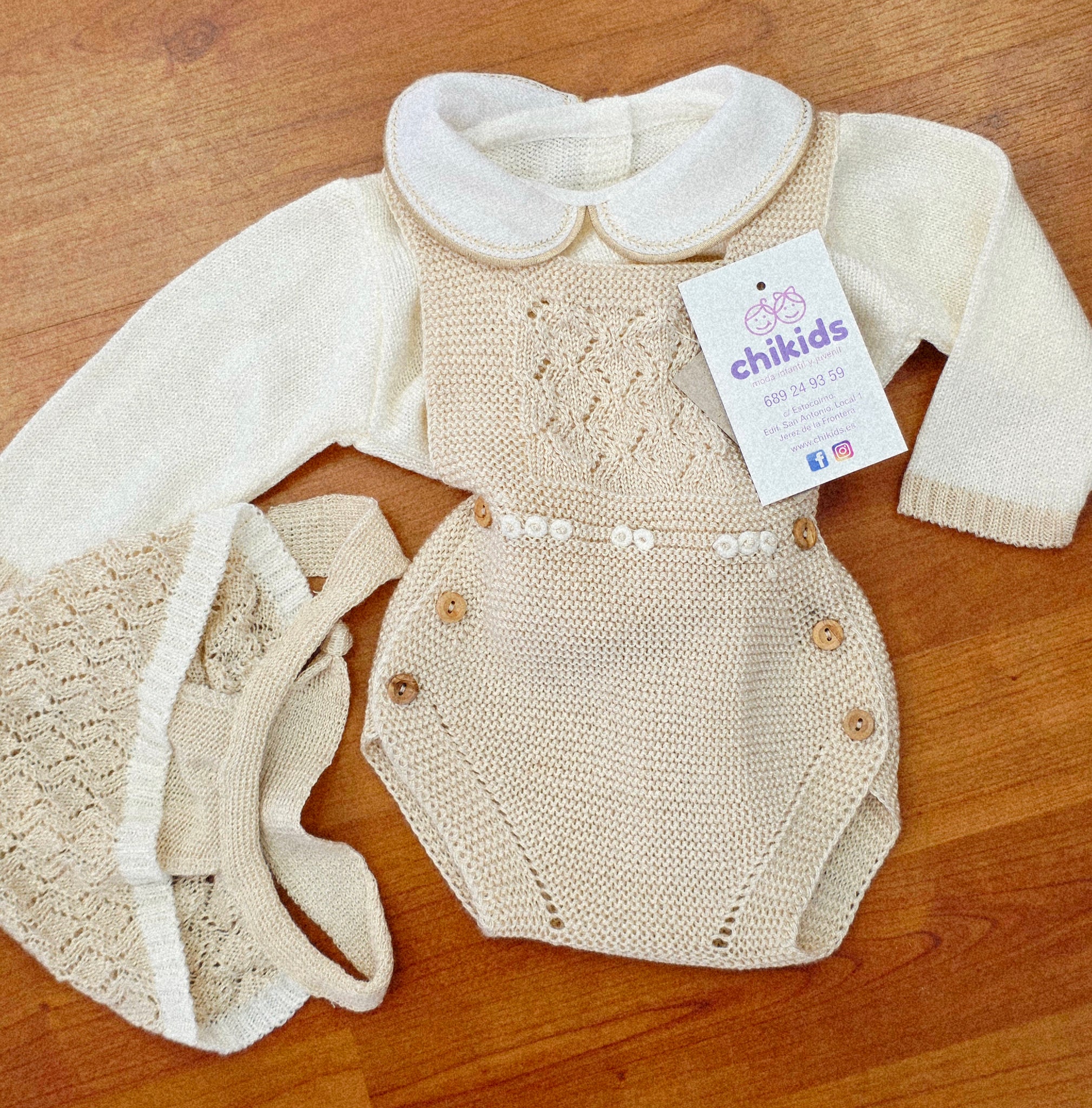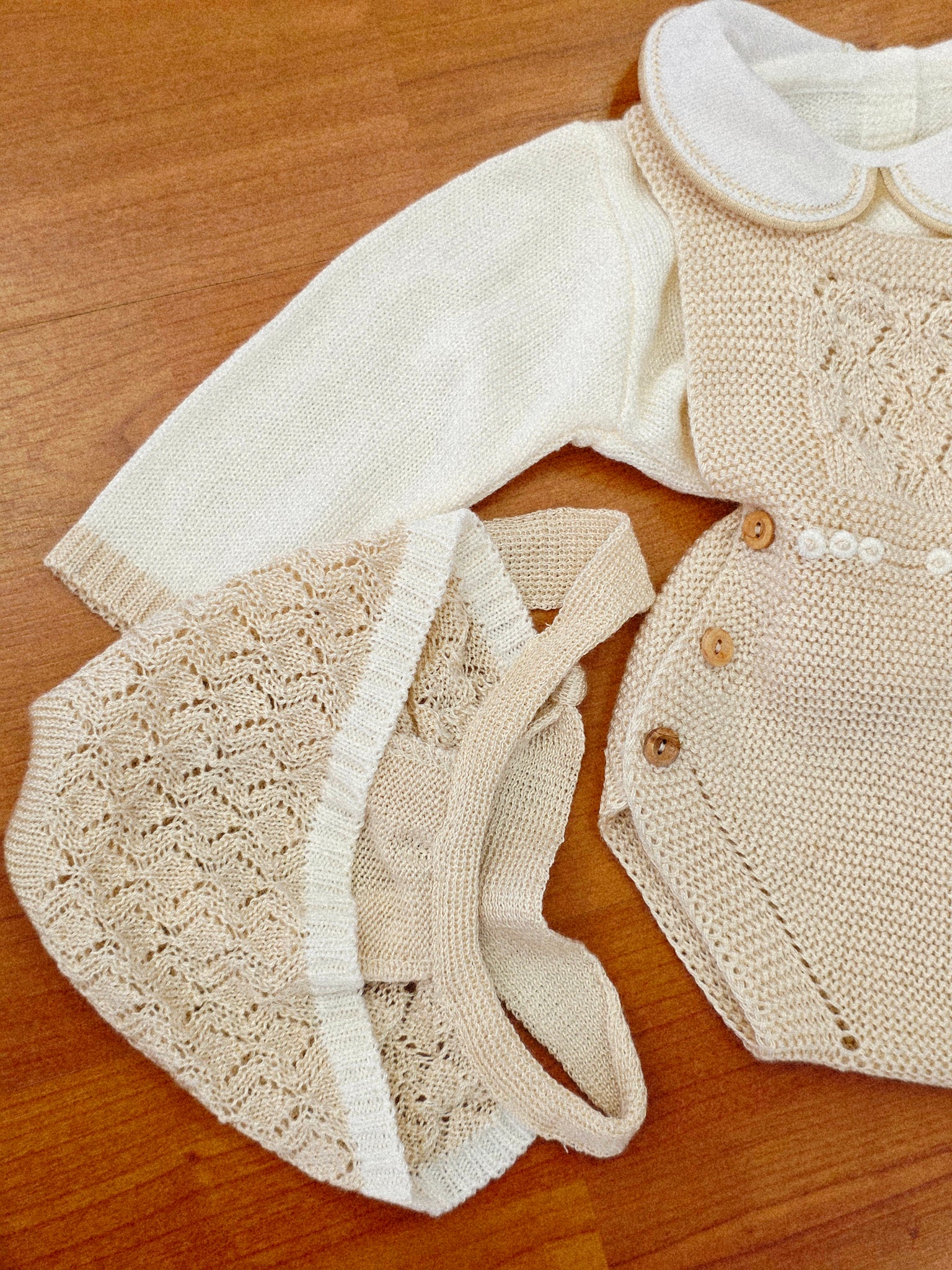 Conjunto Peto hilo 0 a 6 mes Arena Primavera Verano