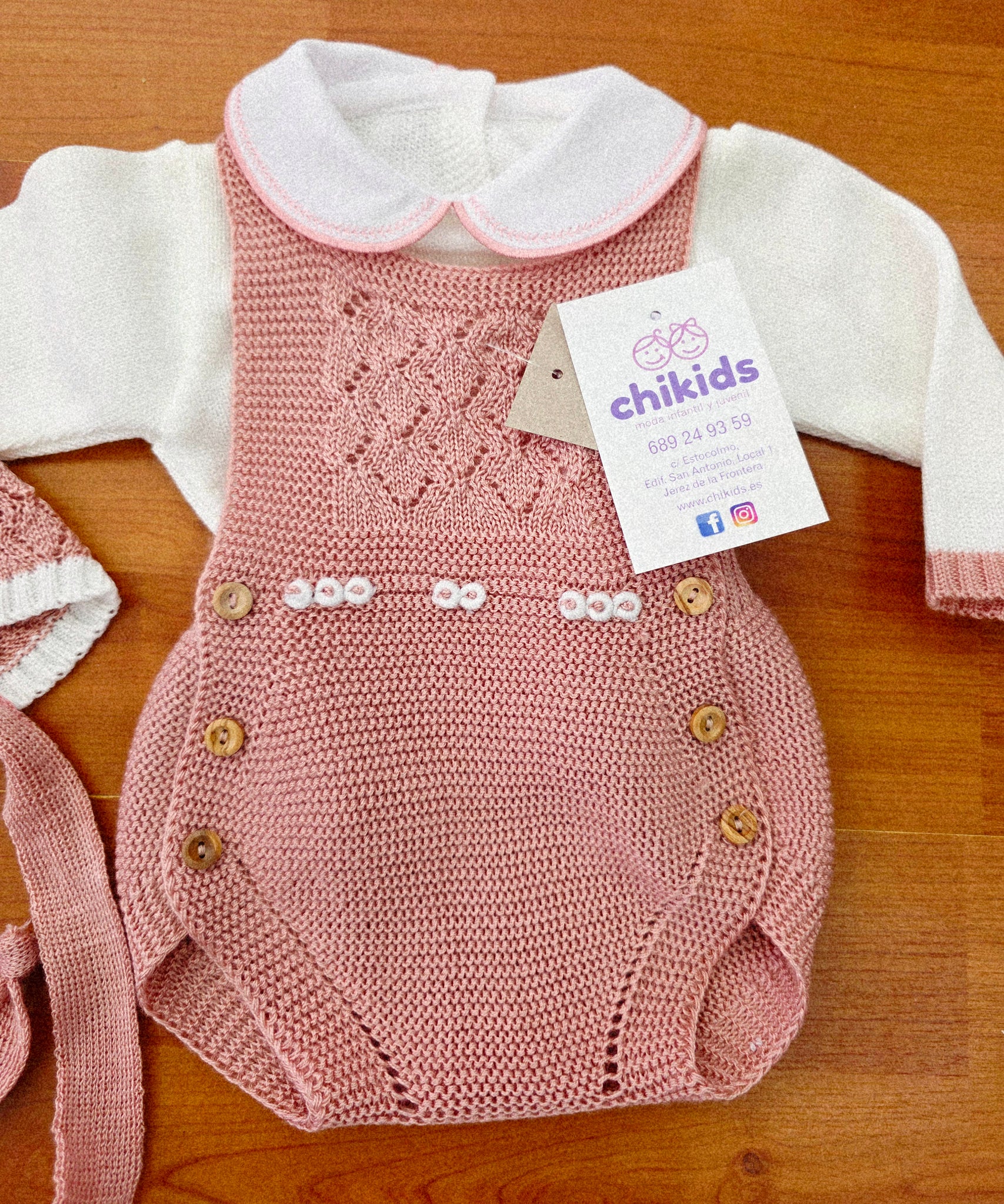 Conjunto Peto hilo 0 a 6 mes Rosa Palo | Primavera Verano