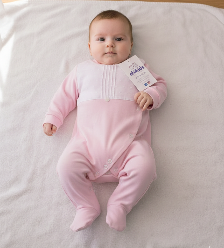 Pelele 'pecho plumeti" 0 a 6 mes rosa | Primavera verano