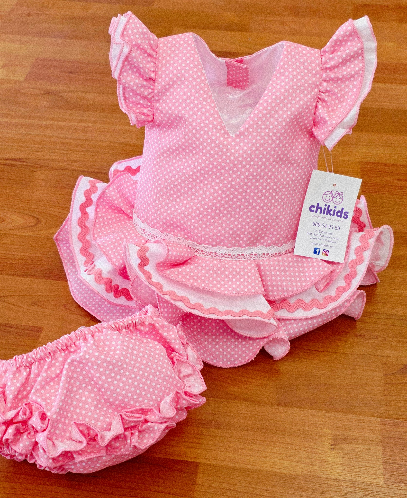 Vestido y braga Flamenca "Rosarillo" rosa bebe/blanco 3 a 18 meses