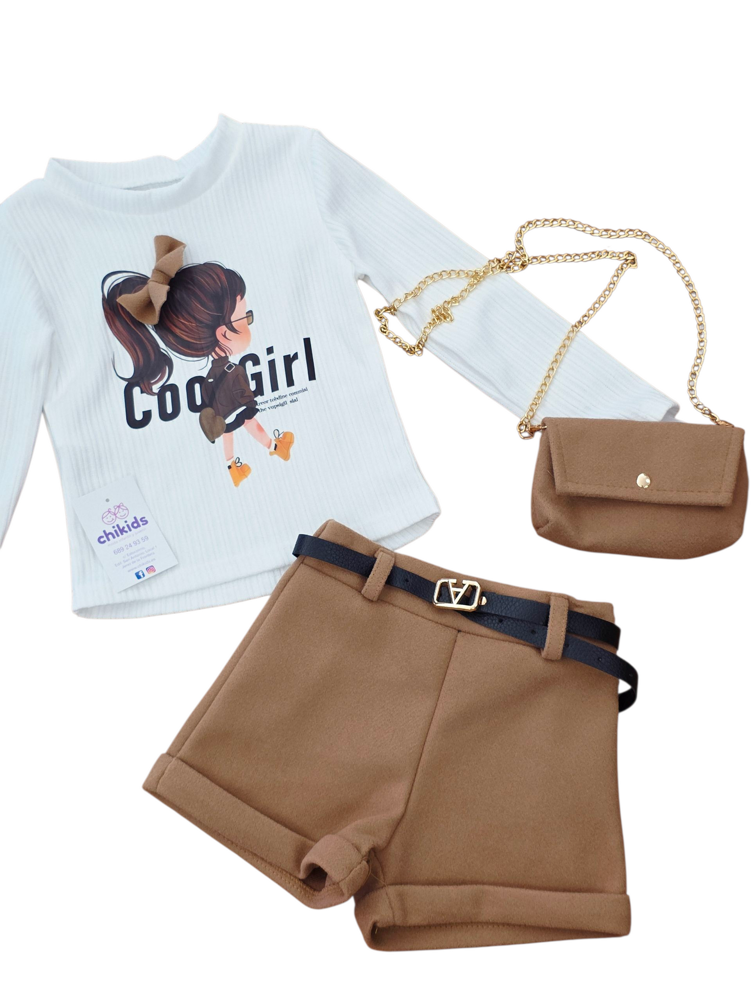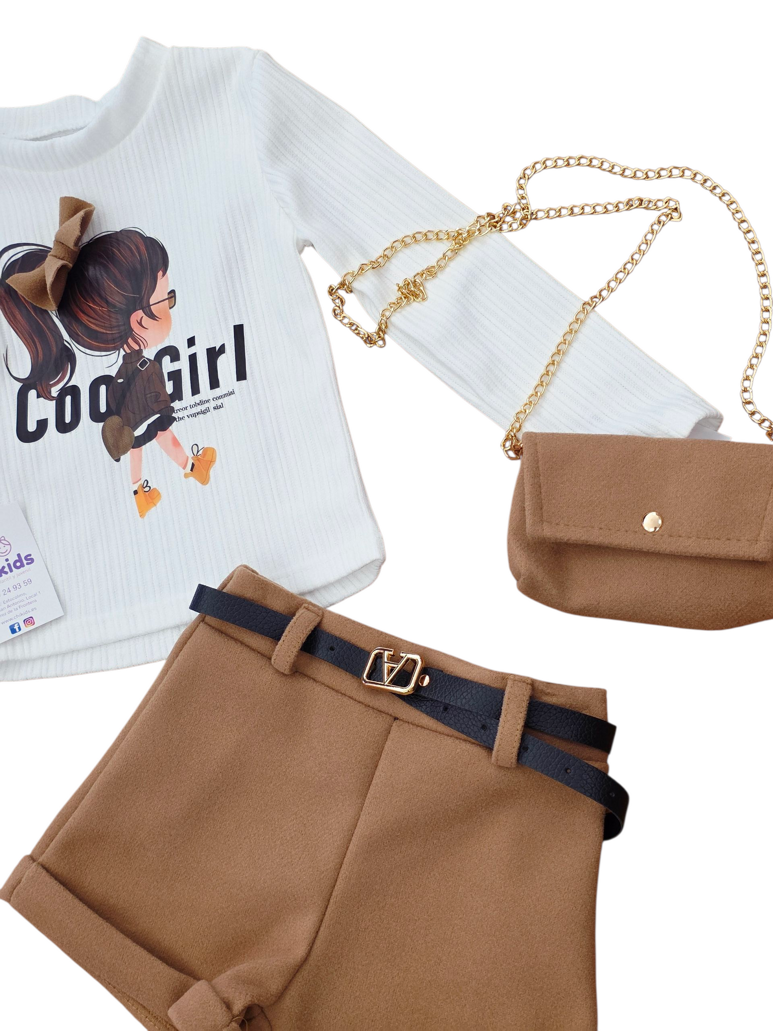 Conjunto 3 piezas " Sofia" camel 4 a 14 años